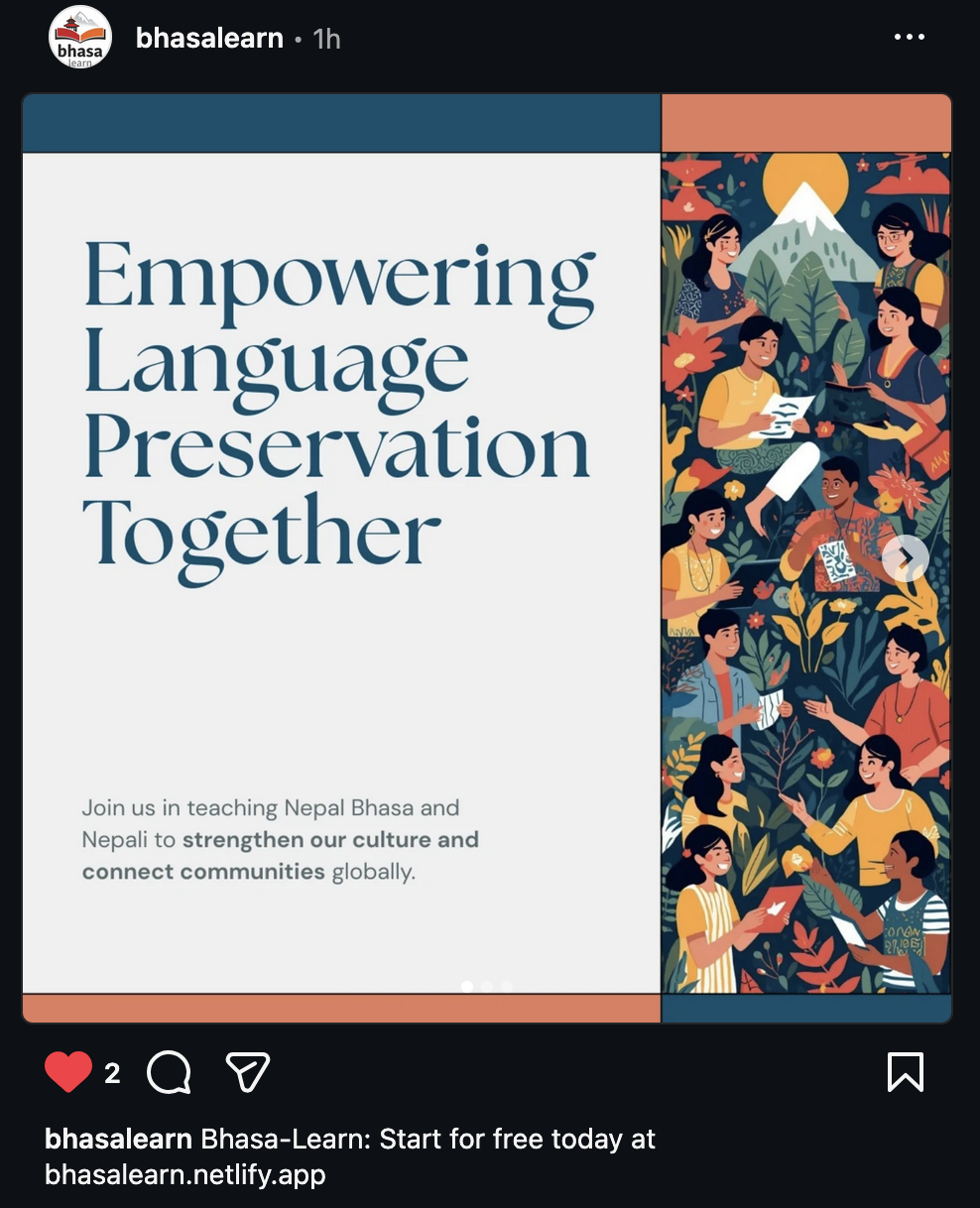 Bhasa-Learn has officially launched its Instagram account, marking a new step in its mission to preserve and promote Nepal Bhasa and Nepali languages through modern digital learning. The platform aims to make language learning simple, engaging, and accessible for students, educators, and culture enthusiasts. Through short lessons, cultural insights, vocabulary posts, and interactive content, Bhasa-Learn seeks to reconnect people with their linguistic roots while embracing technology-driven education. This Instagram launch serves as a community space where language, culture, and learning come together to ensure that Nepal’s rich linguistic heritage continues to thrive for future generations.